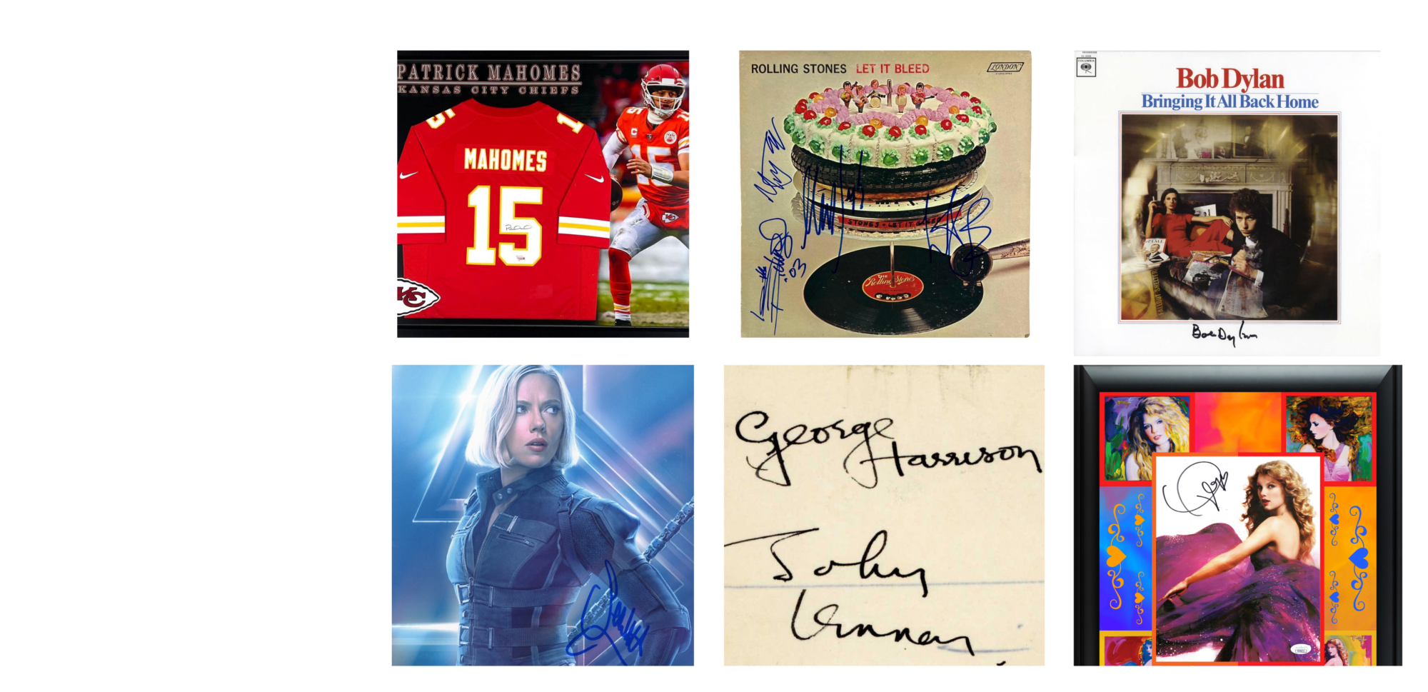 For our first auction of the New Year, E&B will be offering the most diverse content yet, beginning with our mainstay of Music—including everything from a complete vintage Beatles autograph page and a Rolling Stones group signed "Let it Bleed," to a rare fully signed Alice in Chains album, ranging all the way to contemporary sensations like Taylor Swift. Also included will be a plethora of Hollywood autographs such as cast-signed posters and scripts, and including rare signers like Scarlett Johansson. We're branching out into some new categories, such as Sports, including everything from a vintage Ty Cobb handwritten letter to a custom framed Patrick Mahomes autographed jersey. Join us on Thursday January 25th @ 7PM ET and win your next piece of Pop Culture History.
